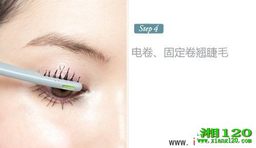 如果前面几步都完成后睫毛还是不肯屈服卷起来,不用担心,我们还有秘密武器,所以一步的关键系数也不低哦。我们击退蟑螂腿的必杀技就是睫毛电卷器咯~把睫毛电卷器轻压在睫毛的中上段,让睫毛向上,然后加热睫毛,让它卷翘并固定,这样就大功告成啦。