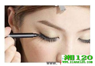 步骤二:同样使用黑色眼线笔描绘上眼线,但笔触要细且尽量贴近睫毛根部,这样可使眼型轮廓更被自然突显而完整。