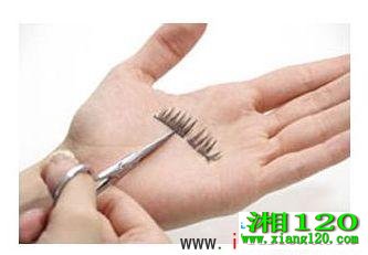 步骤三:戴假睫毛的成败关键在于假睫毛的“贴合度”,尤其遇到一整排的假睫毛,最好剪六到七刀,变成一撮一撮的,可大大降低失败风险。