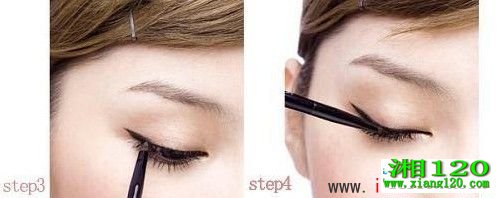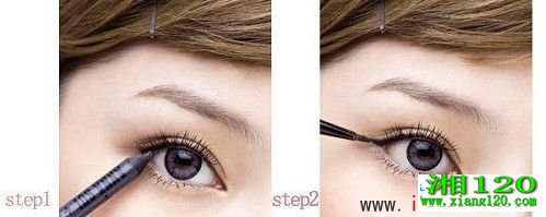第四步. 然后沿着睫毛根处,仔细的往眼头描绘出细致的上眼线。