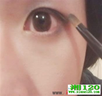 第四步:接着来,我们开始画眼妆了。用化妆扫选取适当淡棕色眼影扫上眼皮眼皮,打造流行的烟熏妆 ,余粉略带过下眼睑。然后用黑色眼线 液沿睫毛根部画一条大约2-3mm的眼线,并稍微上扬,之后扫上纤长型的 ,刷出根根分明的感觉。