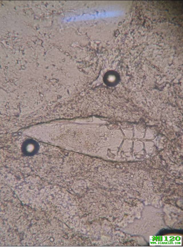 徐东医生从患者眼睛上取下3根睫毛,放在显微镜下观察。果然,其中一根睫毛上面有3只螨虫在缓慢蠕动。一般认为,3根睫毛中1根有超过三只螨虫,即可确诊为螨虫引起的前部睑缘炎。