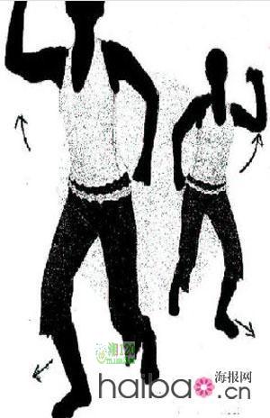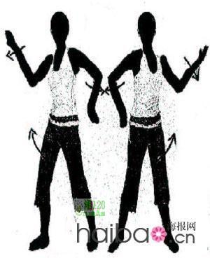 然后将手置于腰部位置,同样进行前后摆动。一开始时手肘弯曲、让手指朝向腰部的方向,然后手指前后摆动,慢慢的再将动作加大,摆动整个手臂。