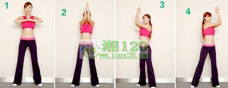 Step1:双腿打开,比肩略宽,脚尖外展,手臂[/url]伸直,双手手心相应。收腹挺胸,屈膝下蹲,感觉大腿、小腿及臀部肌肉紧绷。