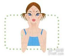 B、从内眼角开始,经过额头慢慢移向鬓角,再经颊骨的上方向鼻子两侧做伸展按压的运动。