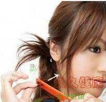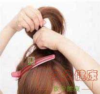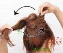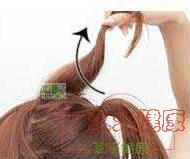 2. 将上步骤预留的发量扭转,然后绕住马尾,用发夹固定。