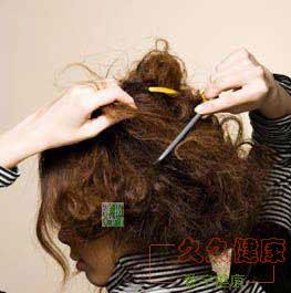 2.在靠近发根的地方夹玉米须,让头发有蓬度。