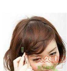 4. 编完后,用发夹固定在耳侧,从脸旁拉出头发遮盖住,以修饰脸型。