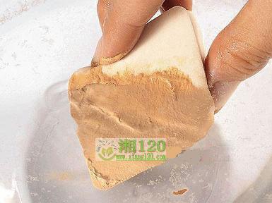 清洗步骤一:先把粉扑上多余的粉弹掉;