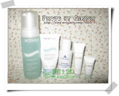 洁面小样——茱丽的是赠品,被我用来洗粉扑了,给油皮用的,清洁力有些太强,洗涤剂的味道,不喜欢。LA MER的洁面和晶钻都不错,味道也好。