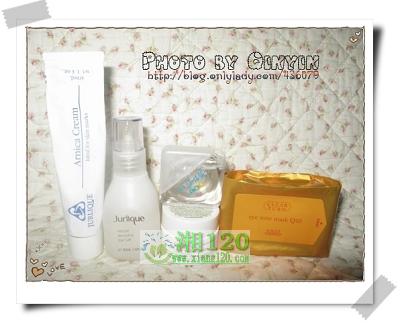 JURLIQUE金盏花液——镇定皮肤很好,没事就兑等量的水来敷脸,可以用很久,据说还能缩毛孔。茱丽的东西确实不错,就是比较麻烦。