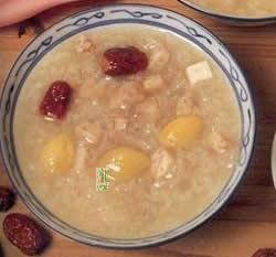 (11)红枣糯米粥:山药、苡仁、荸荠、大枣、糯米同煮,放入适量白糖,有健脾胃、益气血、利湿止泻、生津止渴之功效,适用于病后体弱及贫血、营养不良、食欲不振、慢性肠炎等患者食用。