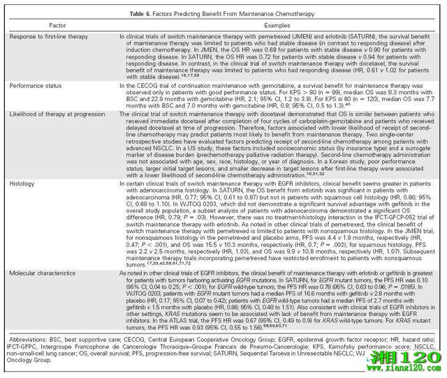 近年来,由于生存获益有限、存在附加毒性、经济因素以及生活质量等问题,维持化疗的概念一直存在争议。,引起了研究者通过这种不断演化的治疗方式,对鉴别出可能取得最大获益患者的兴趣。鉴于某些研究发现,通过维持化疗取得的生存差异,仅限于在出现进展时未接受二线治疗的患者,部分研究者认为,与接受二线治疗相关的患者及病情特征可能对维持治疗策略患者筛选进行指导。,正如在其他章节中提到的相关药物临床试验显示,肿瘤组织学及分子特征可对通过培美曲塞及EGFR抑制剂进行维持治疗的获益情况进行预测。