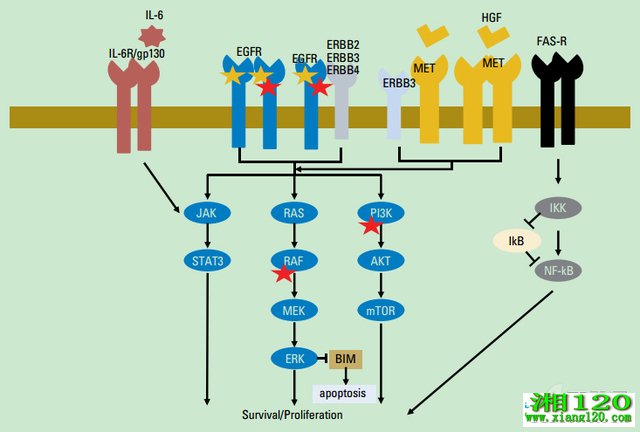 EGFR信号通路和耐药机制图示