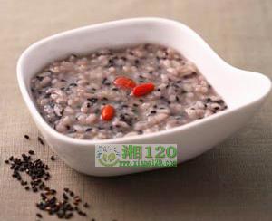 黑芝麻淘净晒干,炒熟研细,每次取25克,投入以100克粳米煮至将熟的粥内,加蜂蜜1匙,熬至粥稠食用。